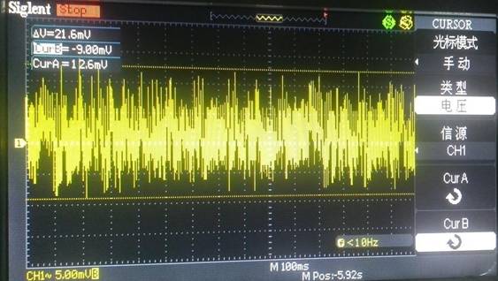 之后測試+5V 的紋波。由圖可知 Δ V(紋波)為 484mV,顯然高于 要求(100mV),并且由圖可知紋波頻率小于 10Hz,由表 3-1 可知,沒有必要采用容值較小 的瓷片電容來增加濾波效果,可以通過加大電解電容來增加濾波,最后將 220μF 的電容換 成了 470μF,紋波測試如圖 3-8 所示,此時紋波為 80.8mV,小于 100mV,滿足要求。其實 對于設計電路來說,設計到這里就可以結束了,但是為了滿足殘弈悟恩的“虛榮心”,又在 C10 上并接了一個 C20(10μF 瓷片電容),接著測試紋波,如圖 3-9 所示,此時紋波為 21.6mV,可能有人會說這是浪費,這個就依情況而定了。