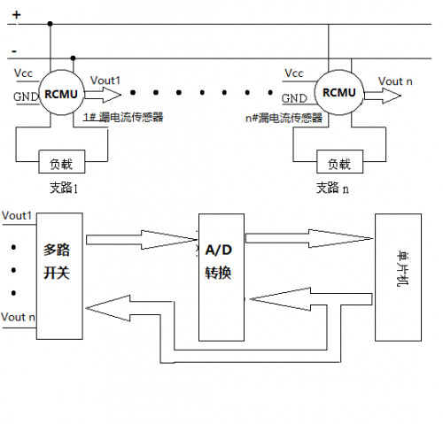 單片機通過多路開關將不同支路漏電流傳感器的輸出電壓采集進來,在絕緣主模塊需要的時候將采集的數據發給主模塊。