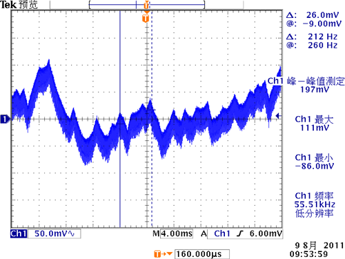 低頻紋波是與輸出電路的濾波電容容量相關。由于直流電源體積的限制,電解電容的容量不可能無限制地增加,導致輸出低頻紋波的殘留,該輸出紋波頻率隨整流電路方式的不同而不同。