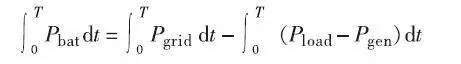 其中P grid為從電網取電功率,P load為建筑的用電負荷功率,P gen為光伏板等建筑內部電源的發電功率,P load與P gen二者之差為建筑物的凈用電負荷:P= P load - P gen。P bat為正值時,表示需要向蓄電池蓄電;為負值時,表示需要蓄電池放電。