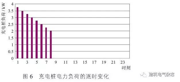 充電樁負荷以某型號電動汽車為例進行計算,其慢充模式下充電時間為8 h,充電量為23 kWh。根據電動汽車的使用情況,設定充電時間為夜間0 ~ 8時,電動汽車充電速率隨蓄電池的荷電量上升而下降,故充電速率設定如圖6所示。
